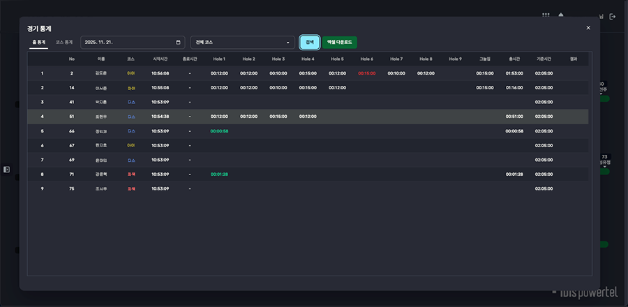 정교한 통계 분석 : 원하는 날짜와 코스별 상세 경기 기록 분석